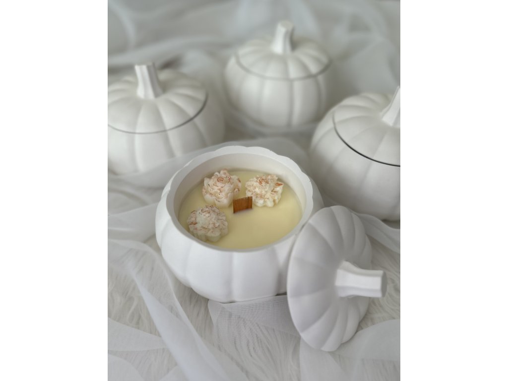 Podzimní svíčka - Dýňová pohádka | CapriCandleGlow ✨ Kompletně ručně vyrobená svíčka ve tvaru dýně ✨