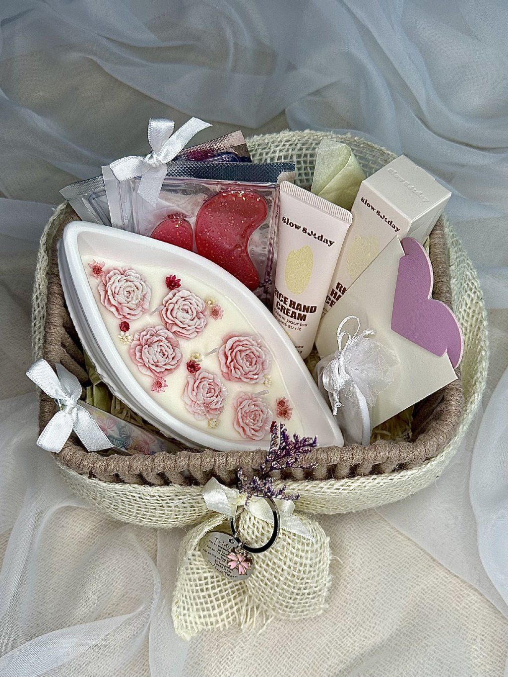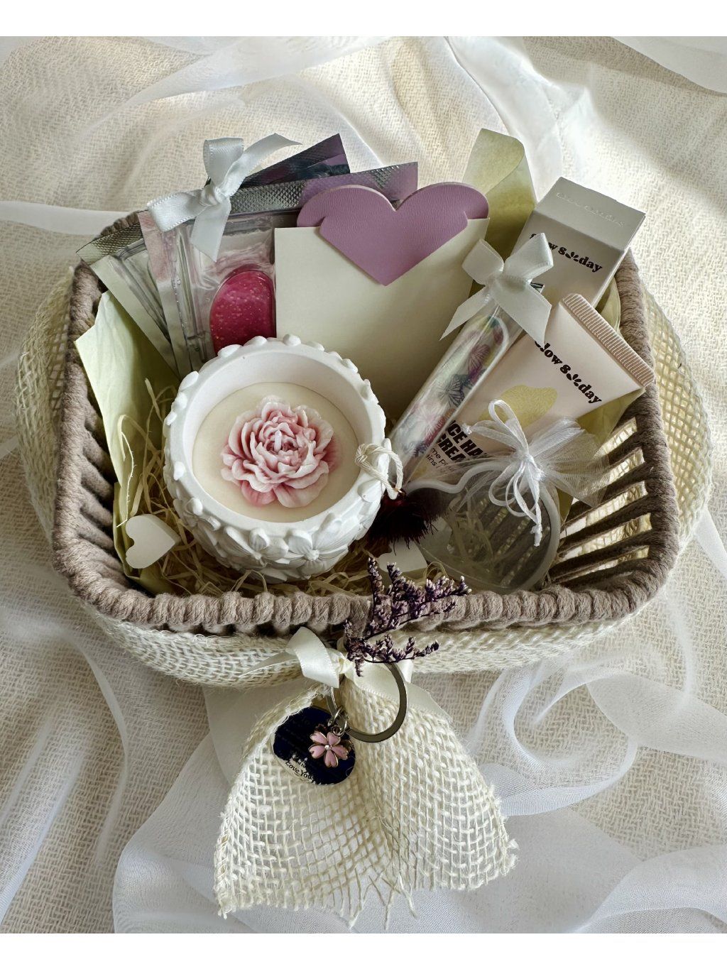 To vše je uložené v krásném, dále využitelném košíku, který se stane stylovým doplňkem koupelny, ložnice nebo třeba kosmetického koutku.