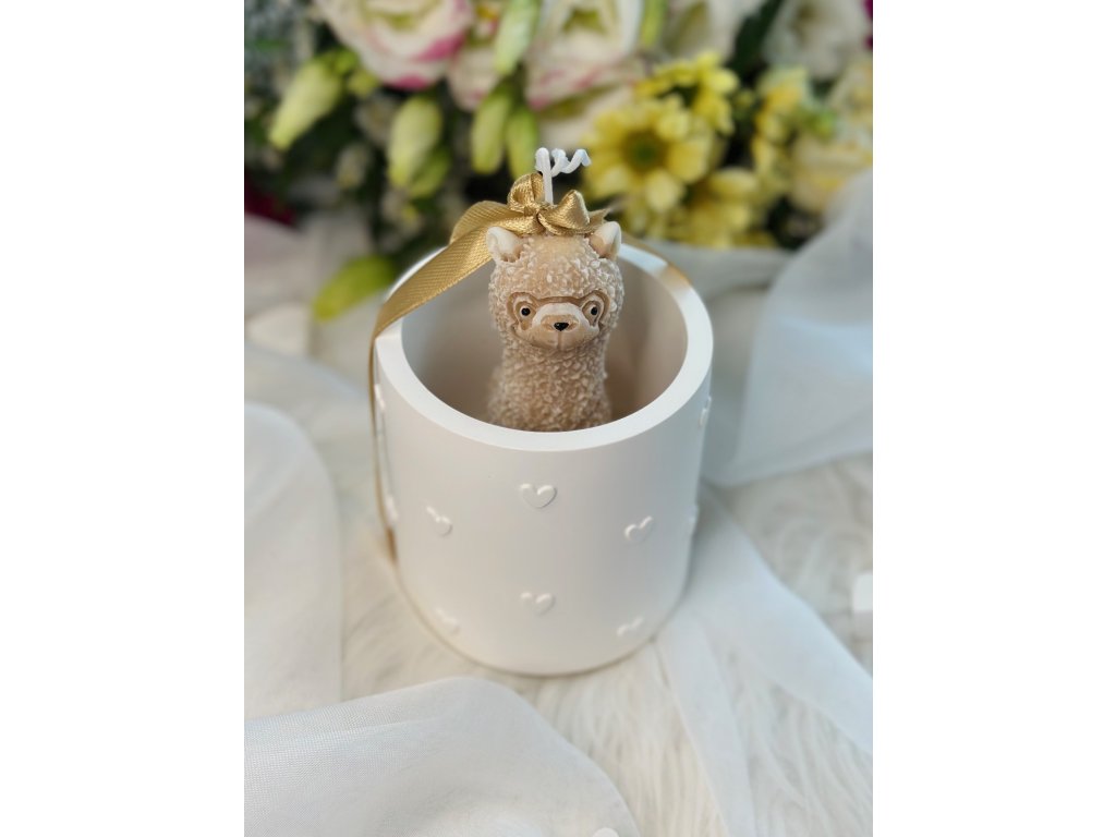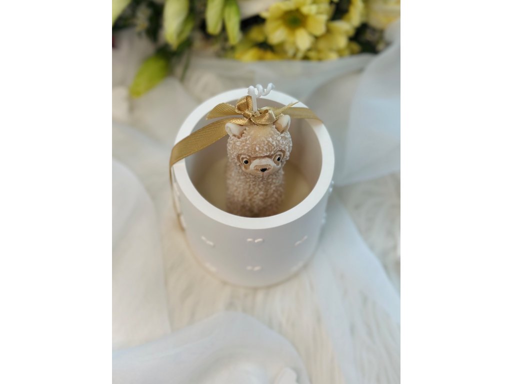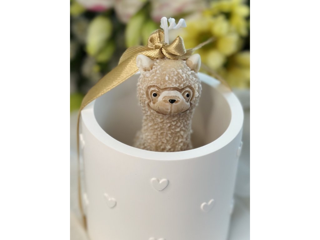 ✧ voskový knot v postavičce lamy, svíčka dohoří v nádobce - lama stojí ještě na cca 4 cm vosku (není nutné lamu vyndavat)