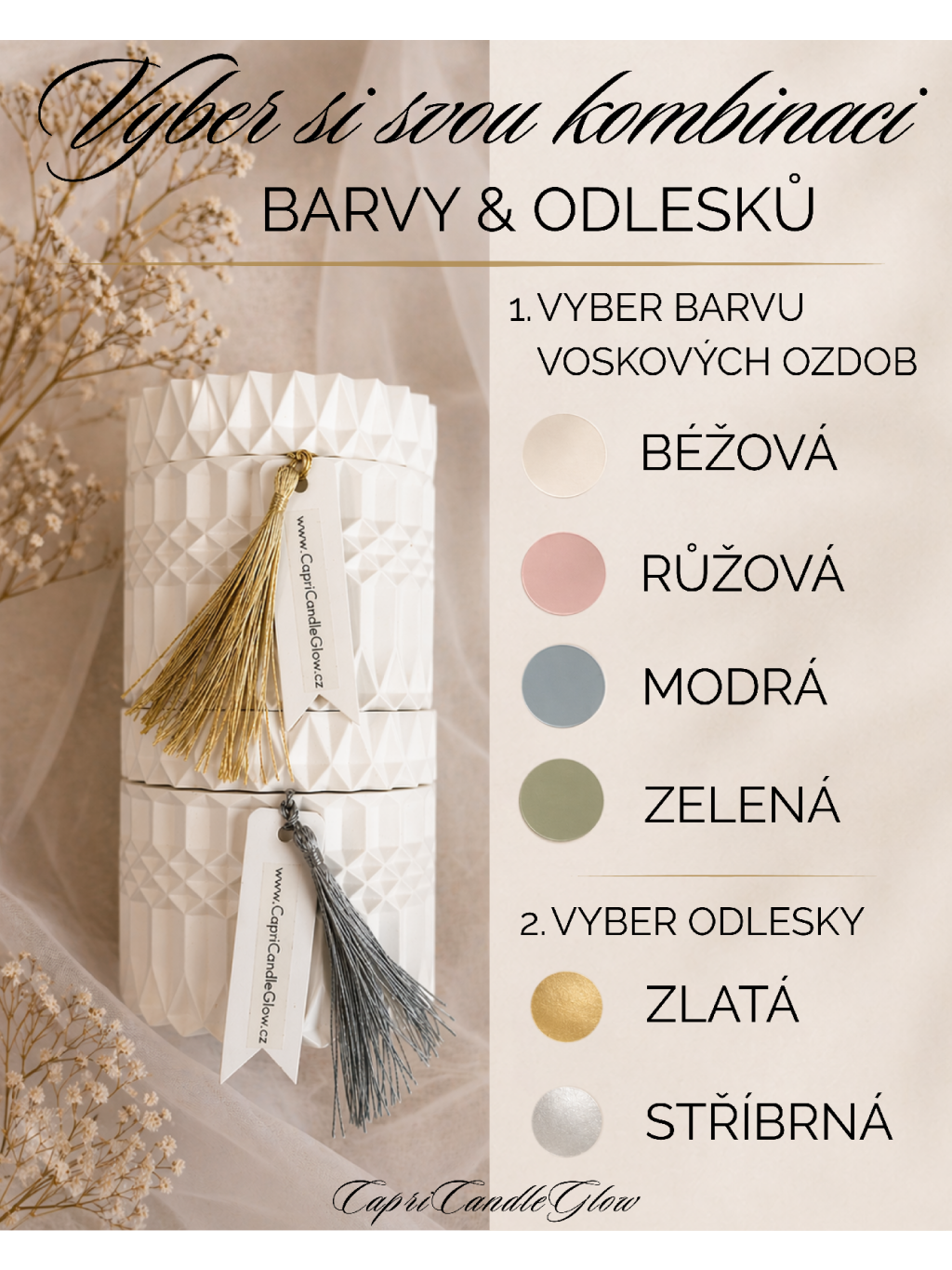 ✧ Před zapálením doporučuji odstranit voskové ozdoby (ty, co jsou větší než 2 cm) z povrchu svíčky, aby se plamínek mohl krásně rozhořet.