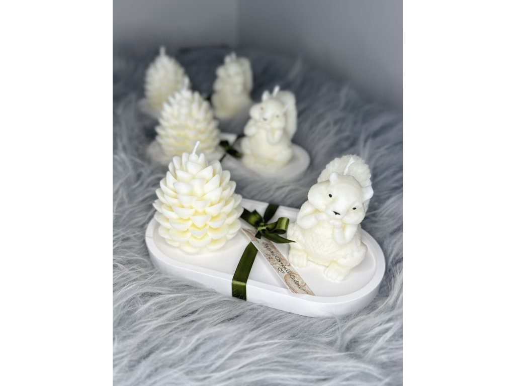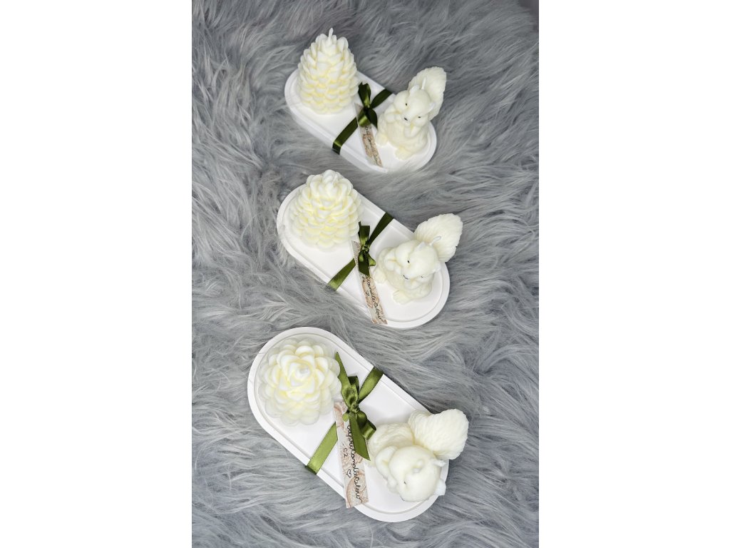 ✧ Ručně odlitý set svíček ve tvaru veverky a šišky